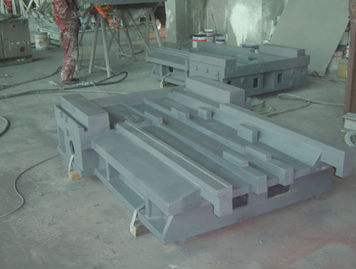 2、要有合理的鑄造工藝。即根據機床底座鑄件結構、重量和尺寸大小,鑄造合金特性和生產(chǎn)條件,選擇合適的分型面和造型、造芯方法,合理設置鑄造筋、冷鐵、冒口和澆注系統等。以獲得 機床底座鑄件。