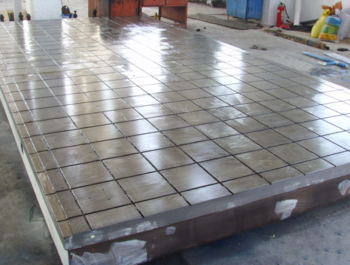 刻線(xiàn)平臺表面處理:工作面采用刮研工藝,用涂色法進(jìn)行檢驗,了平面精度。工作面上加工有直線(xiàn)槽,2mm,間距100mm。具體參數可根據用戶(hù)需求加工。